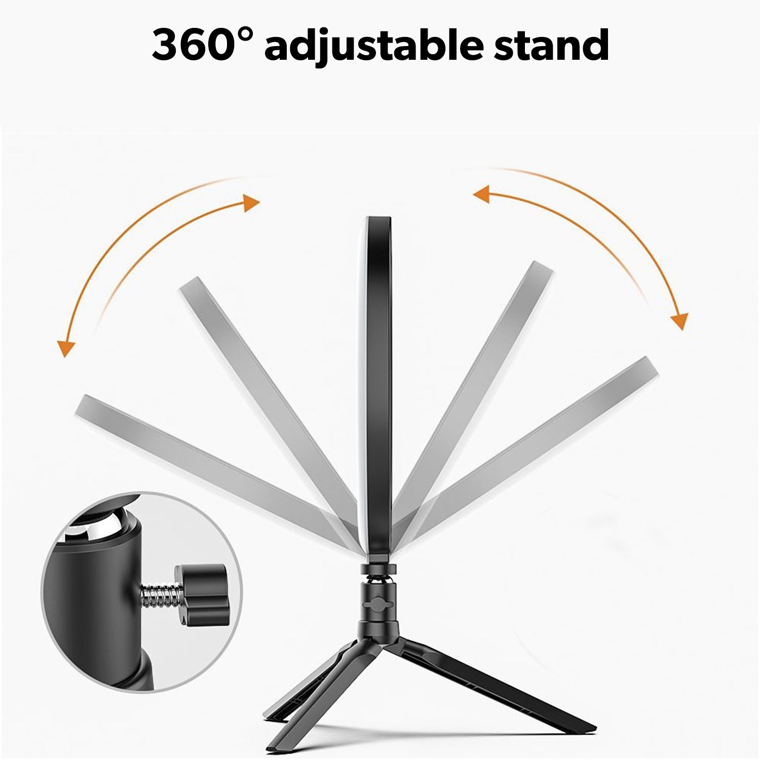 360° Rotation Angle for ring light -The adjustable tripod head allows you to find the perfect angle to light your subject, makes your photograph or livestreaming easily. It is 5V usb powered, we genetally advise 5v2a adaptor but it also work with some 5v1A adaptor but does not work well all 5V1A adaptor. Please choose 5V2A Adaptor for the ring light.