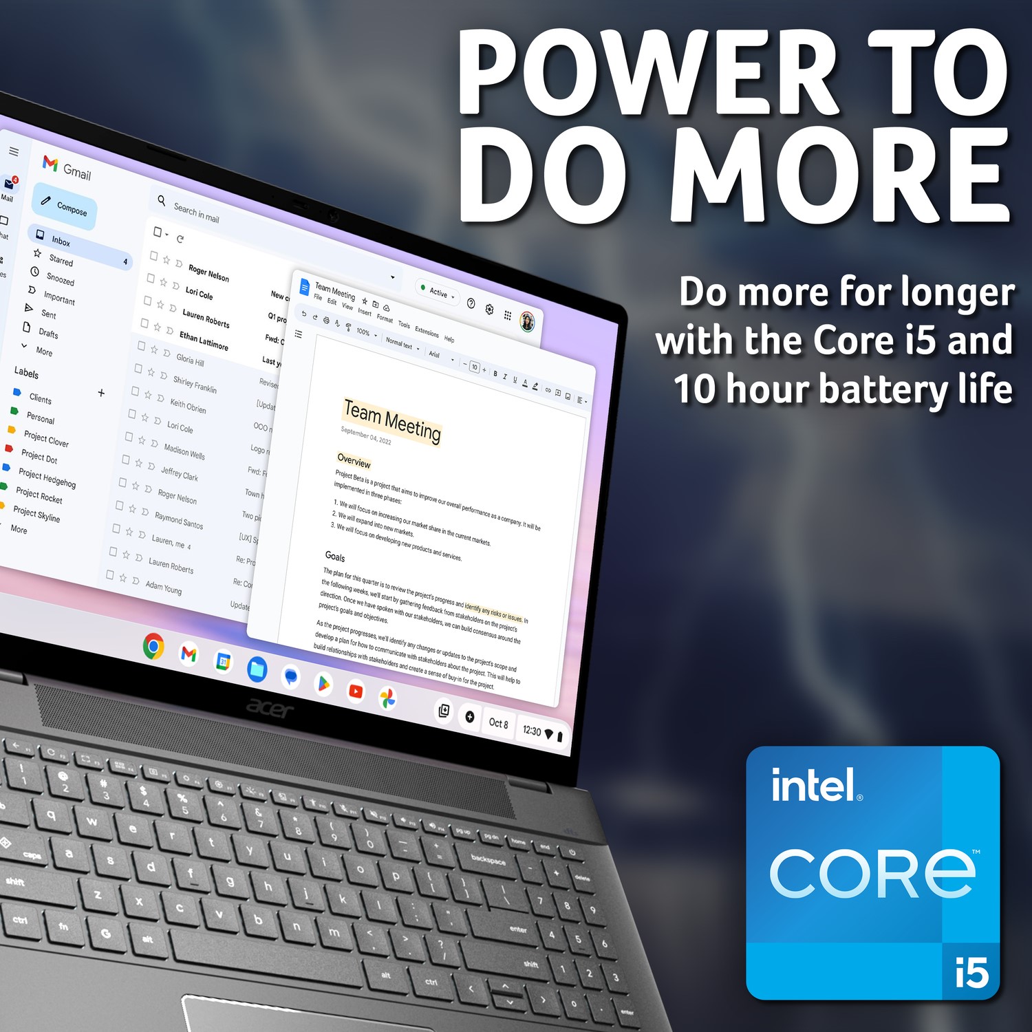 Under the hood, the Chromebook Plus 516 is powered by an Intel Core i5 processor, offering reliable speed and efficiency for everyday tasks and more. From video conferencing and cloud-based editing to multitasking across multiple Chrome tabs and Android apps, this device delivers responsive performance without slowing down. Enjoy quick boot times and seamless switching between tasks—perfect for fast-paced environments and hybrid workflows.
