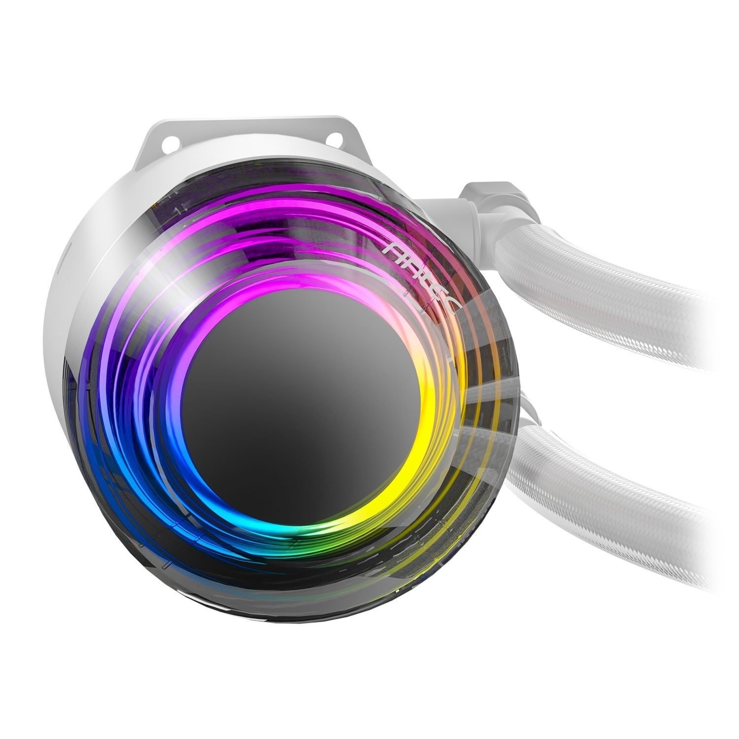 The suspended spiral pump head inspired by the image of a vortex provides outstanding cooling performance and various lighting effects from different angles.