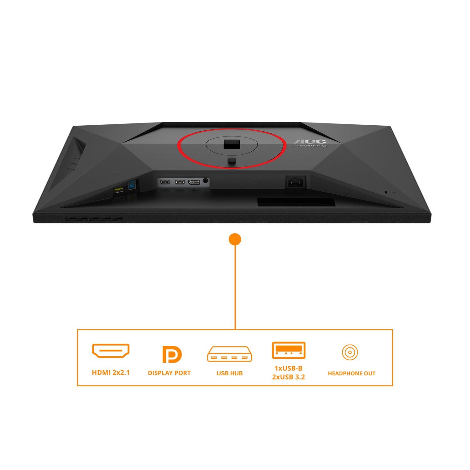 Finished in a bold black and red color scheme, the monitor features a modern, gamer-focused aesthetic. Its sleek frame and sharp lines complement any gaming setup while maintaining a professional appearance.