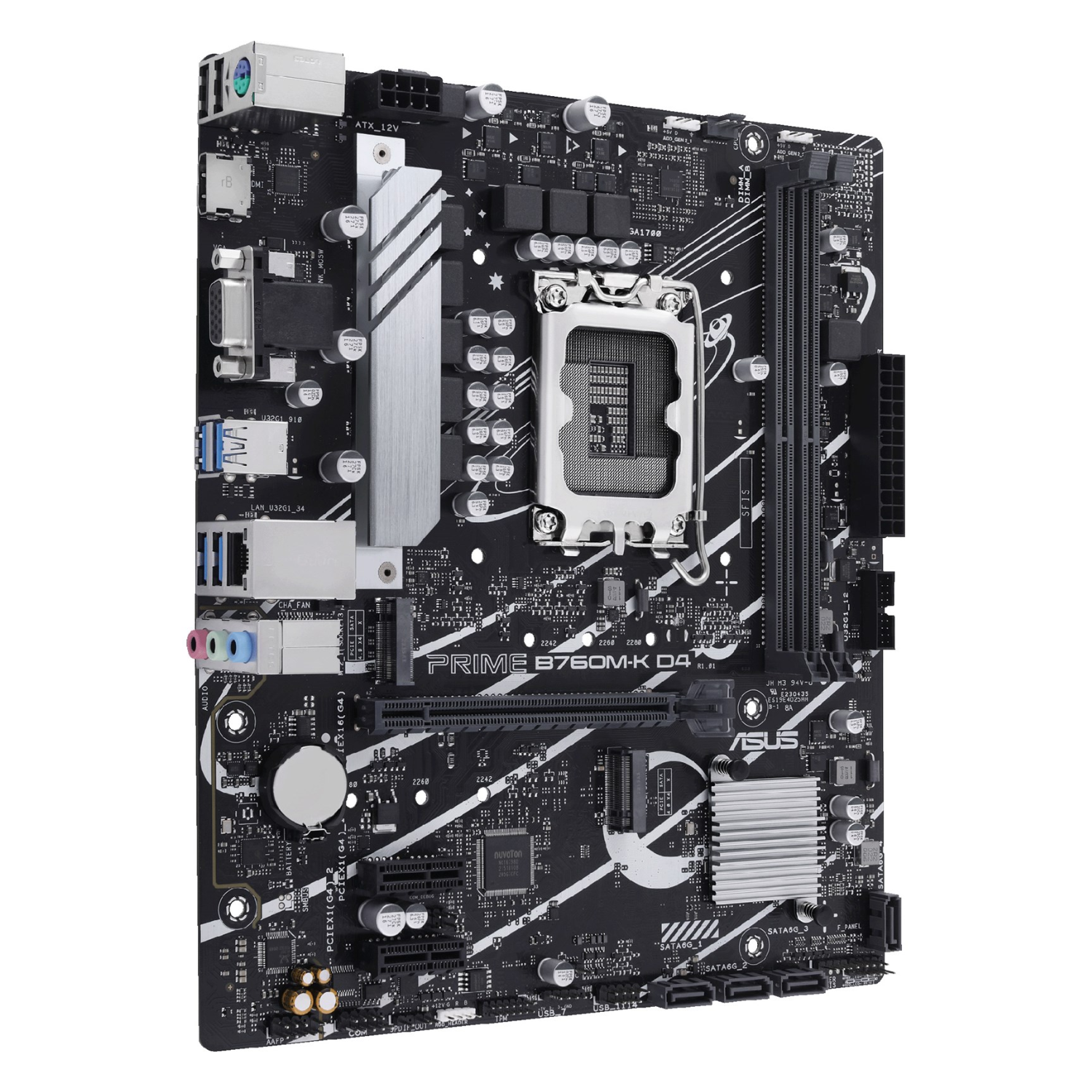 The ASUS PRIME B760M-K D4 is expertly engineered to support Intel’s 13th and 12th Generation Core processors, delivering robust performance right out of the box. With its LGA 1700 socket and micro-ATX form factor, this motherboard is an ideal foundation for compact yet powerful PC builds. Featuring a durable VRM design and high-quality components, it ensures stable power delivery for smooth multitasking and heavy workloads.