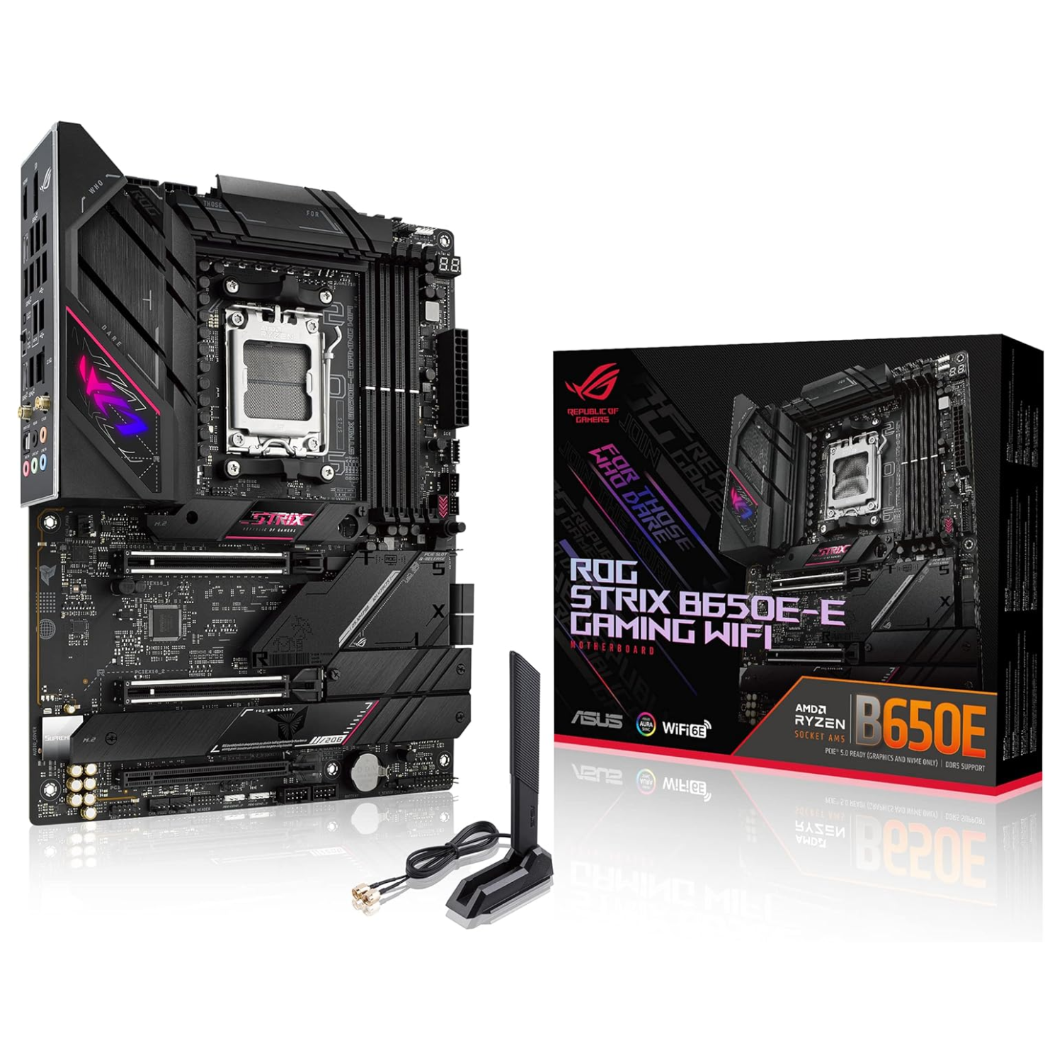 Backing up its core performance, the ROG Strix B650E-E packs superfast WiFi and tethered networking, as well as immersive audio courtesy of its enhanced SupremeFX solution.