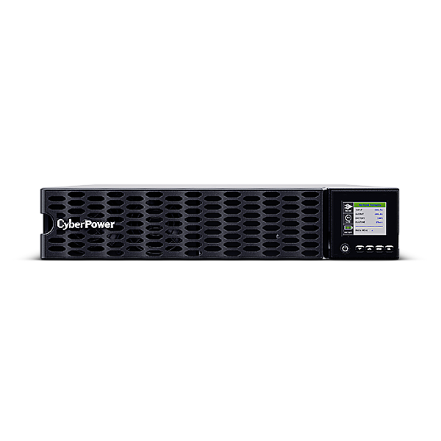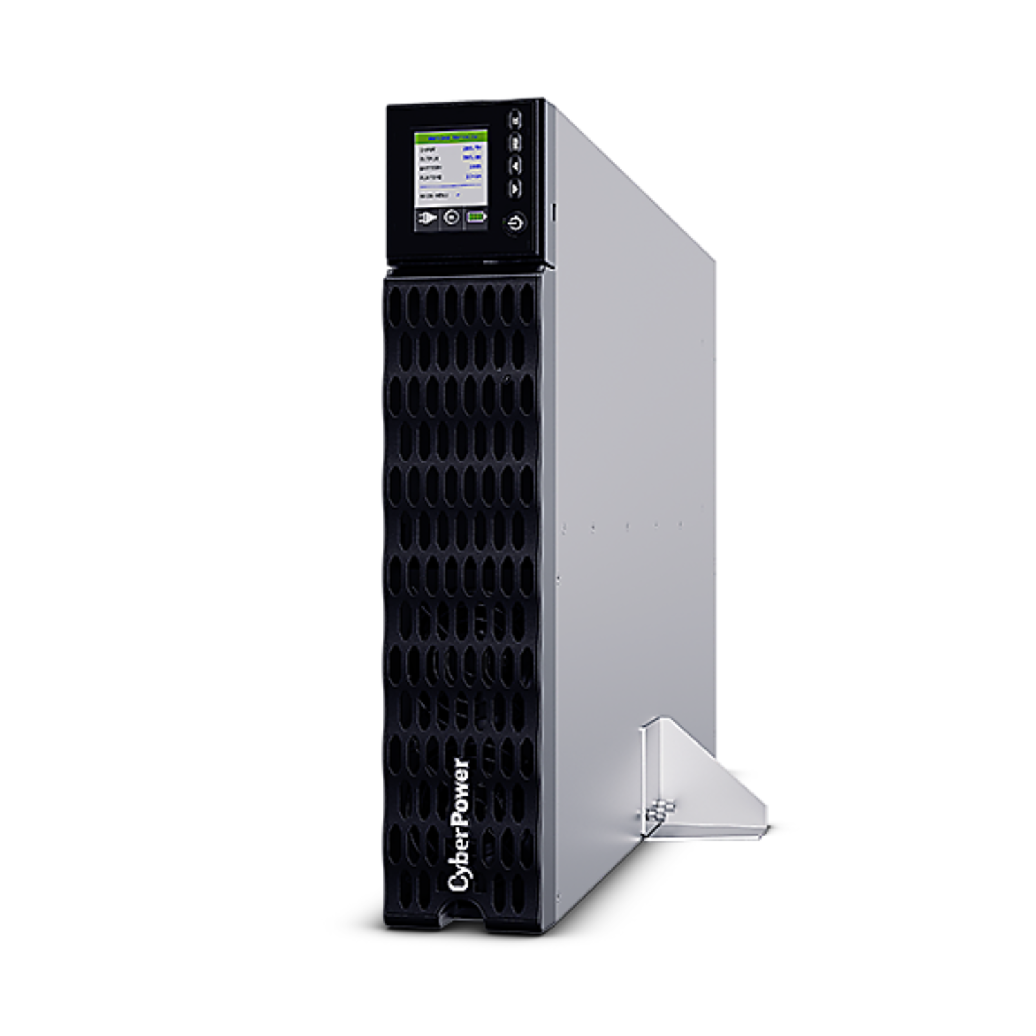 The tiltable LCD panel provides real-time system information including input/output voltage, battery status, load levels, and event logs—making monitoring and configuration intuitive.