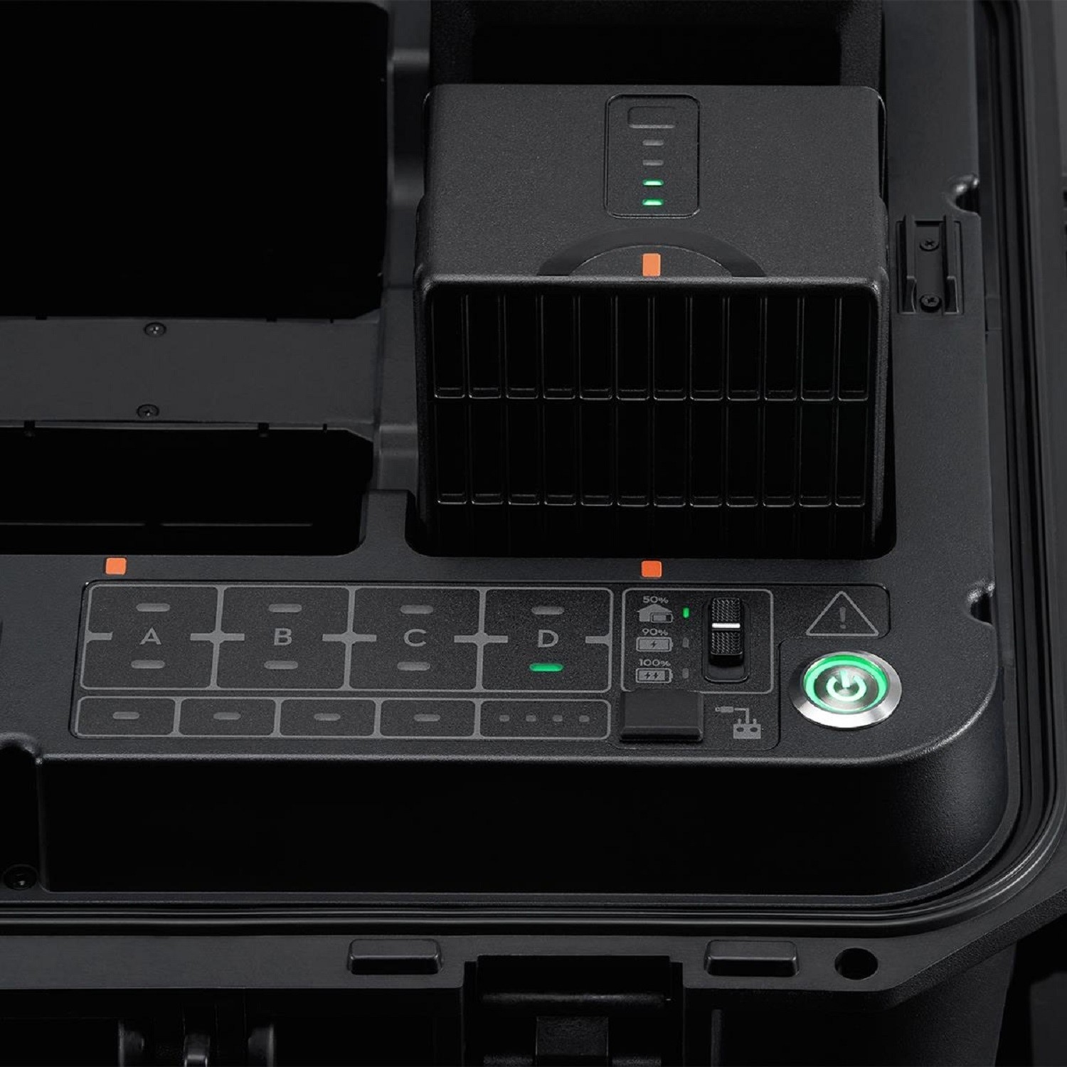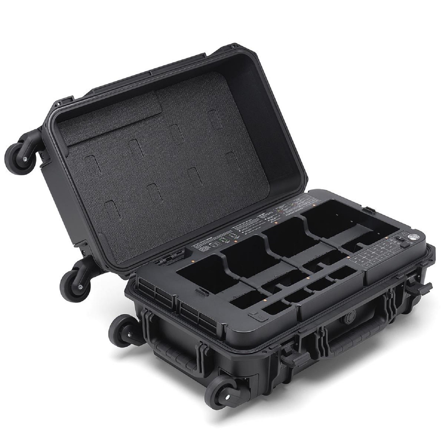 The battery station is a one-stop solution for battery charging, storage, and transport. The new Storage Mode and Ready-to-Fly Mode improve charging efficiency and extend the battery life. The new 360 Degree -movement wheels facilitate more convenient transportation and transitions. The battery station provides eight TB65 battery ports, four WB37 battery ports, one USB-C maintenance port, one USB-C charging port, and one USB-A charging port. It can charge up to two TB65 batteries and one WB37 battery simultaneously.