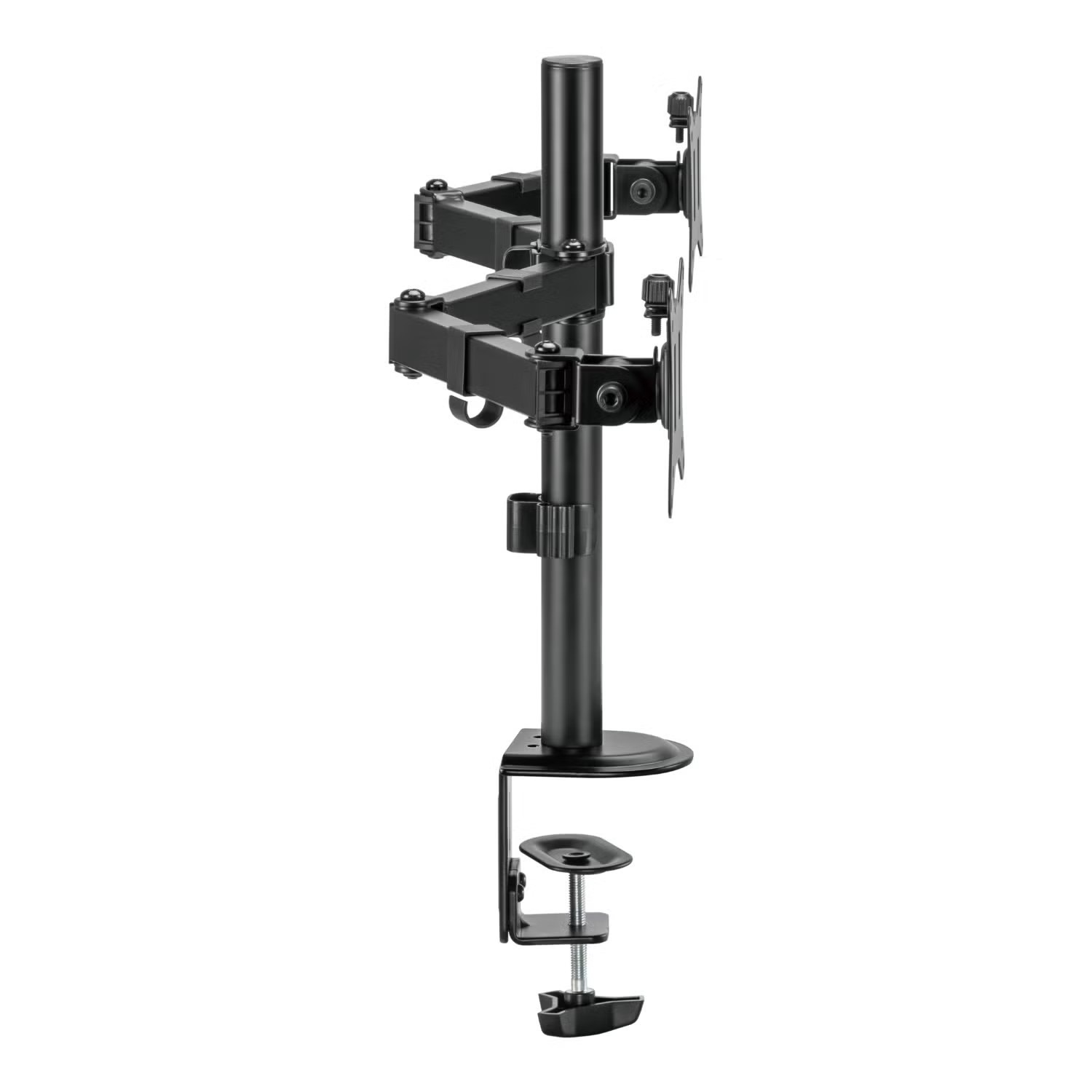 With a durable steel structure, the electriQ Dual Monitor Arm provides stable support for two 17” to 32” monitors up to 9kg(19.8lbs) per arm. Flexible design for ample adjustment and viewing angles, adjustable for either portrait or landscape orientation. Grommet and clamp mounting options included for installation on most any work surface. A detachable VESA plate for user-friendly installation. Cable clips included for an organized and clutter-free workplace.
