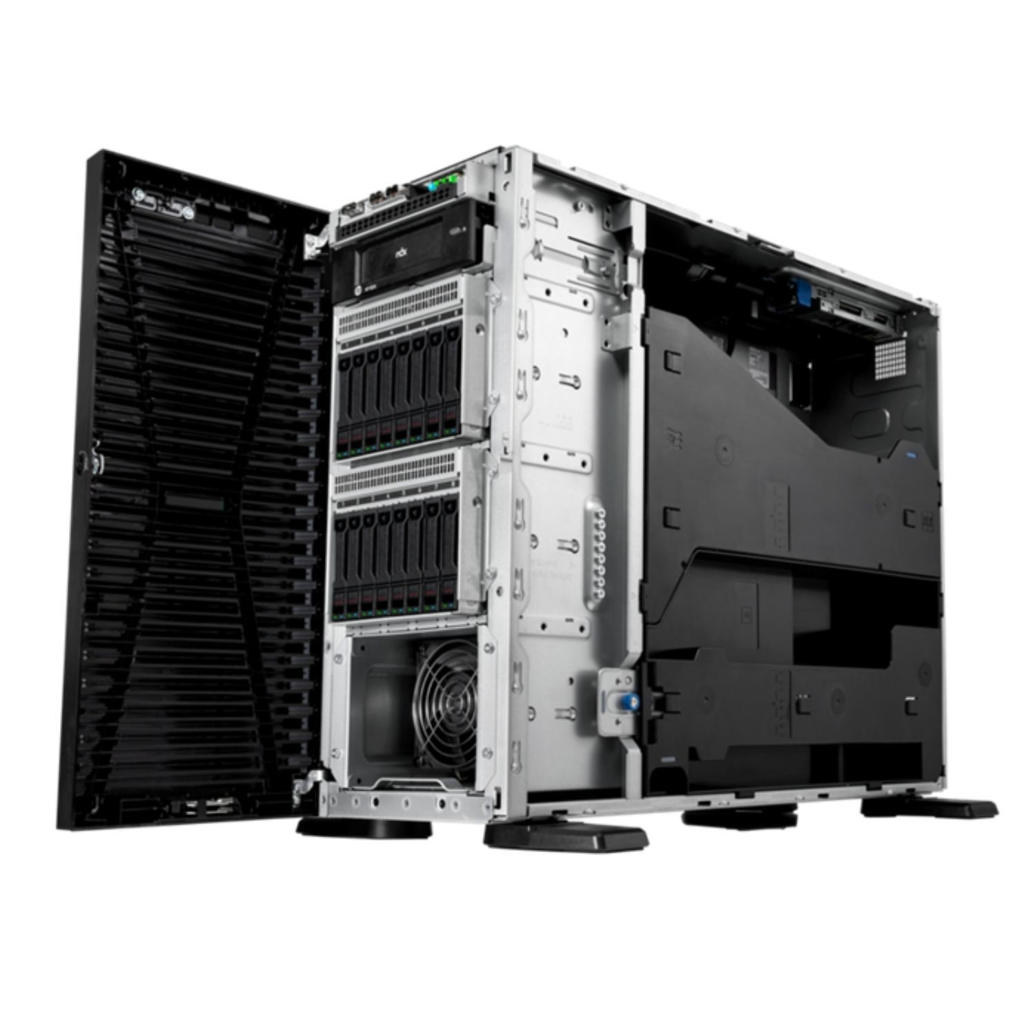 The HPE ProLiant ML110 Gen11 server is an enhanced single processor tower with performance, expansion, and security at an affordable price. It supports the 4th Gen Intel Xeon Scalable processor, HPE DDR5 Smart Memory with a maximum capacity of 1024 GB, 4 x16 PCIe Gen5 slots, 1 x16 OCP3 slot, eight large form factor (LFF) or 16 small form factor (SFF) disk drives. It can easily be converted to a rack using 5.5U of rack space.