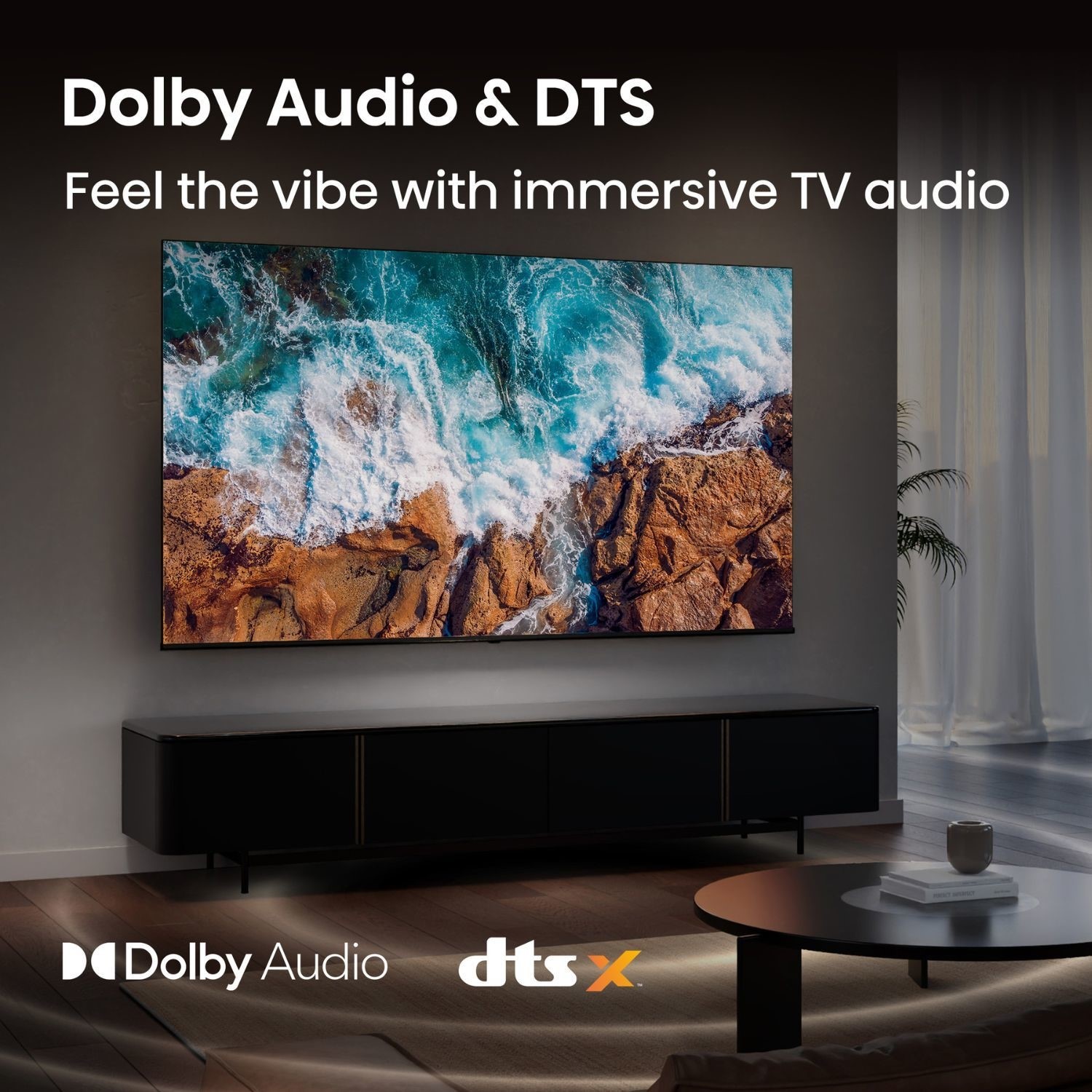 🔊 Dolby Audio & DTS Virtual:X – Powerful, Room-Filling Sound