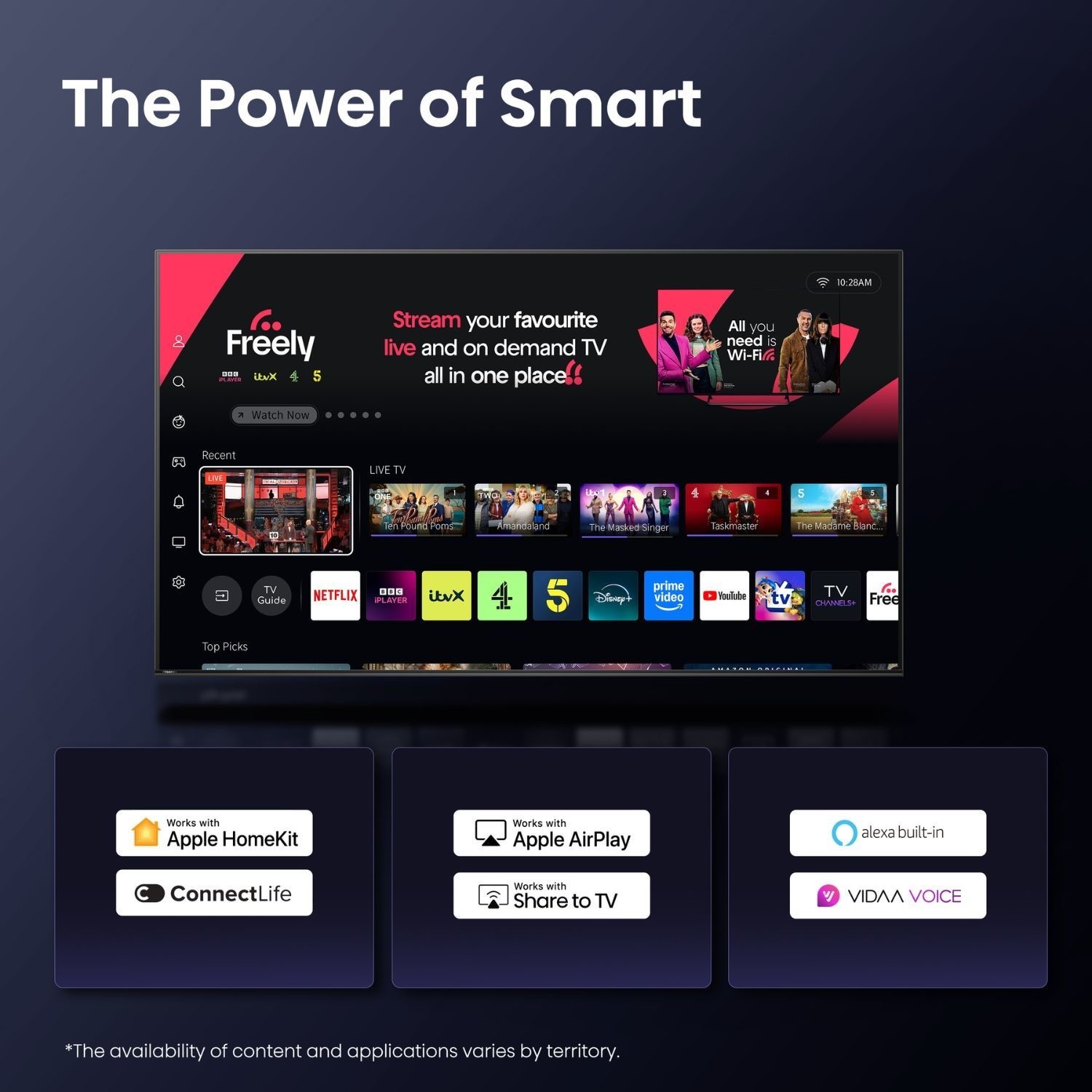 Freely allows you to stream live and on-demand UK TV directly over Wi-Fi, with no aerial required. Access popular channels and catch-up services through a single, intuitive interface designed for modern streaming households.