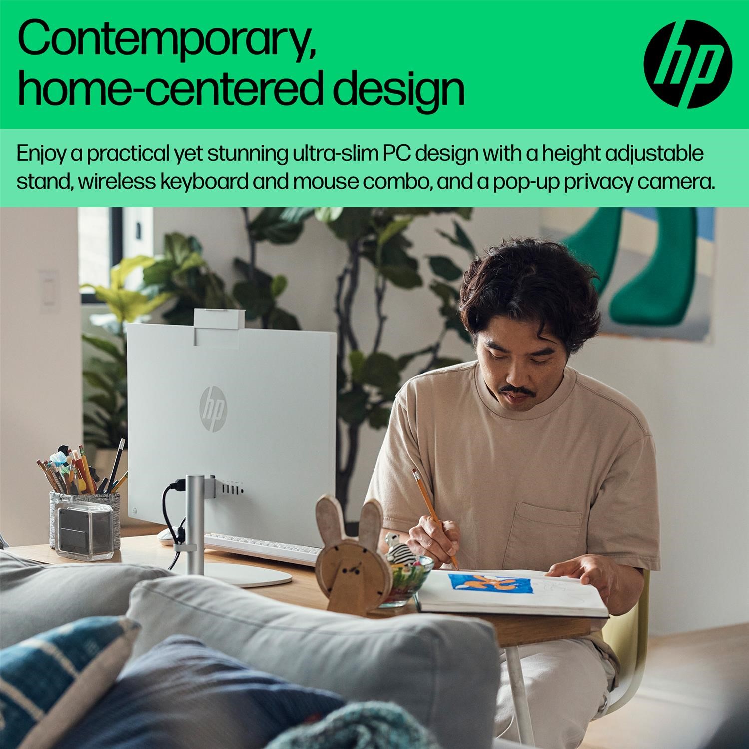 The HP 24-cr0063na combines style and functionality in a single, elegant frame. Its 23.8-inch Full HD display with 1920 x 1080 resolution delivers crisp visuals and vibrant colors, making it perfect for both work and entertainment. With a modern white finish, this All-in-One PC adds a touch of sophistication to any workspace while minimizing clutter with its integrated design.