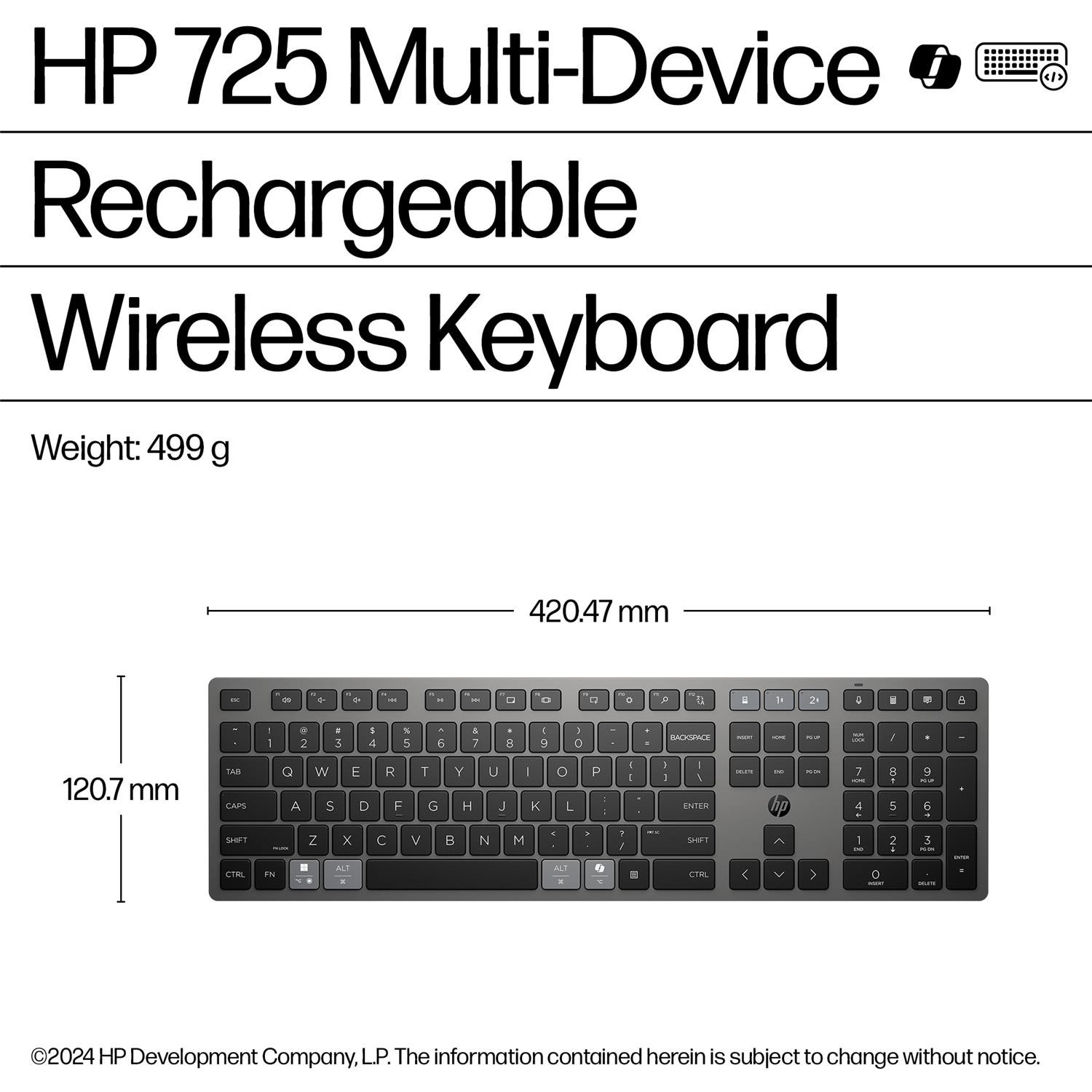 Say goodbye to disposable batteries with the HP 725’s advanced rechargeable supercapacitor. A lightning‑fast 3‑minute charge delivers up to 2 months of typing time, and you can even recharge while you work using the included USB‑C cable — keeping you productive without interruption.