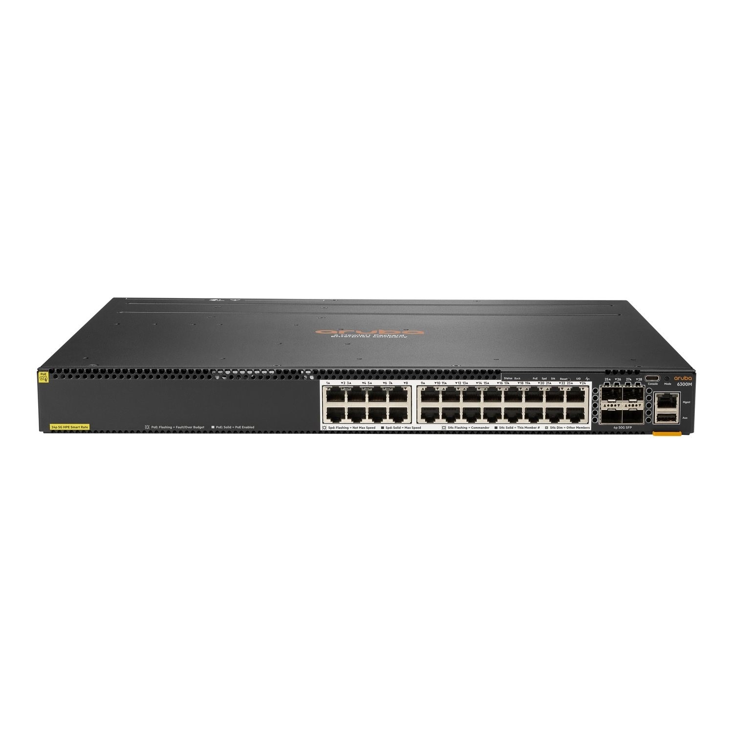 The HP Enterprise Aruba 6300M is a high-performance, managed network switch designed to meet the demands of modern enterprise networks. With 24 ports supporting speeds of 1/2.5/5/10GBase-T and an additional 4 ports supporting 1 Gigabit/10/25/50 SFP56 connectivity, it offers versatility for various networking needs. Equipped with Layer 3 routing capabilities, this switch provides advanced routing functionalities for optimized network performance. Its rack-mountable design ensures easy integration into existing network infrastructures, making it an ideal choice for organizations seeking reliable and scalable networking solutions.