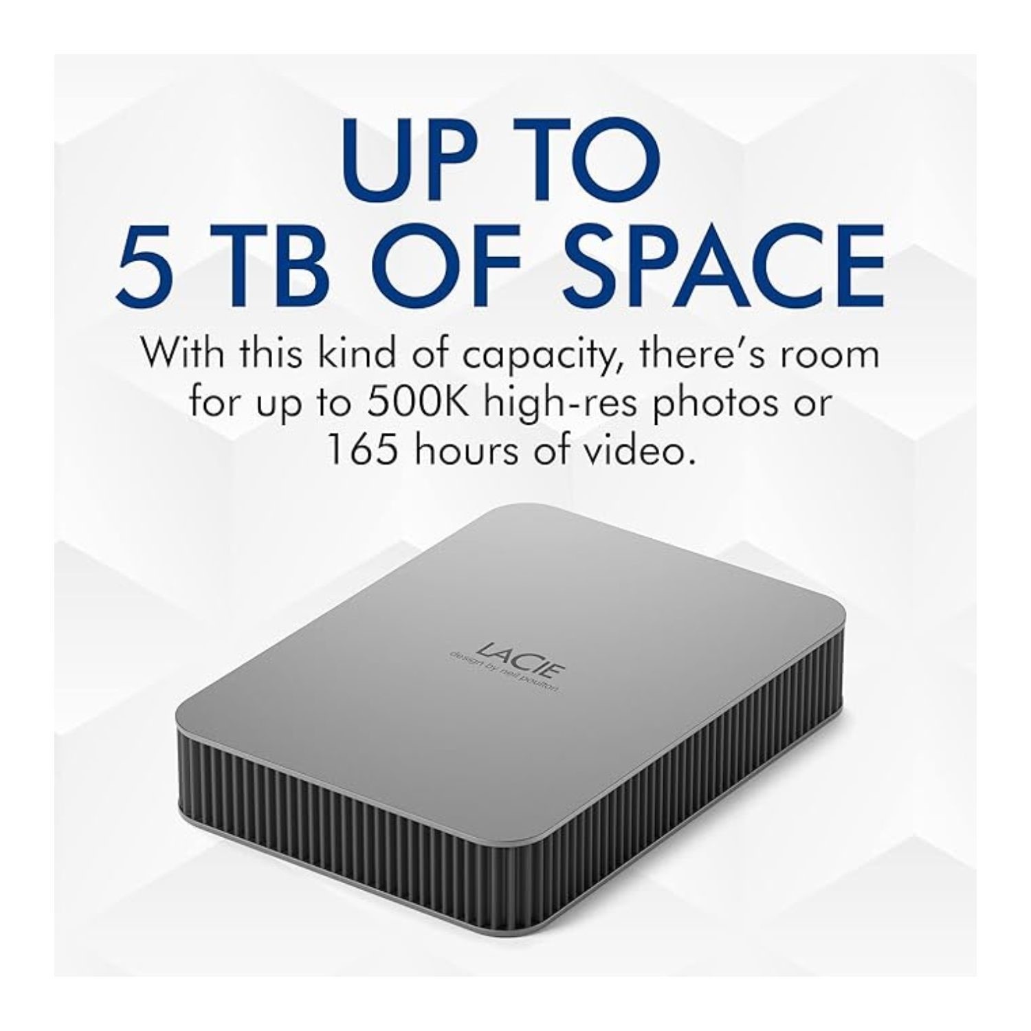 When it comes to our digital lives, not much tops the affection we have for photos and videos. And these memories add up fast. LaCie Mobile Drive offers up to 5 TB of massive on-the-go space for everything worth storing and backing up. Even music, movies, and personal documents.