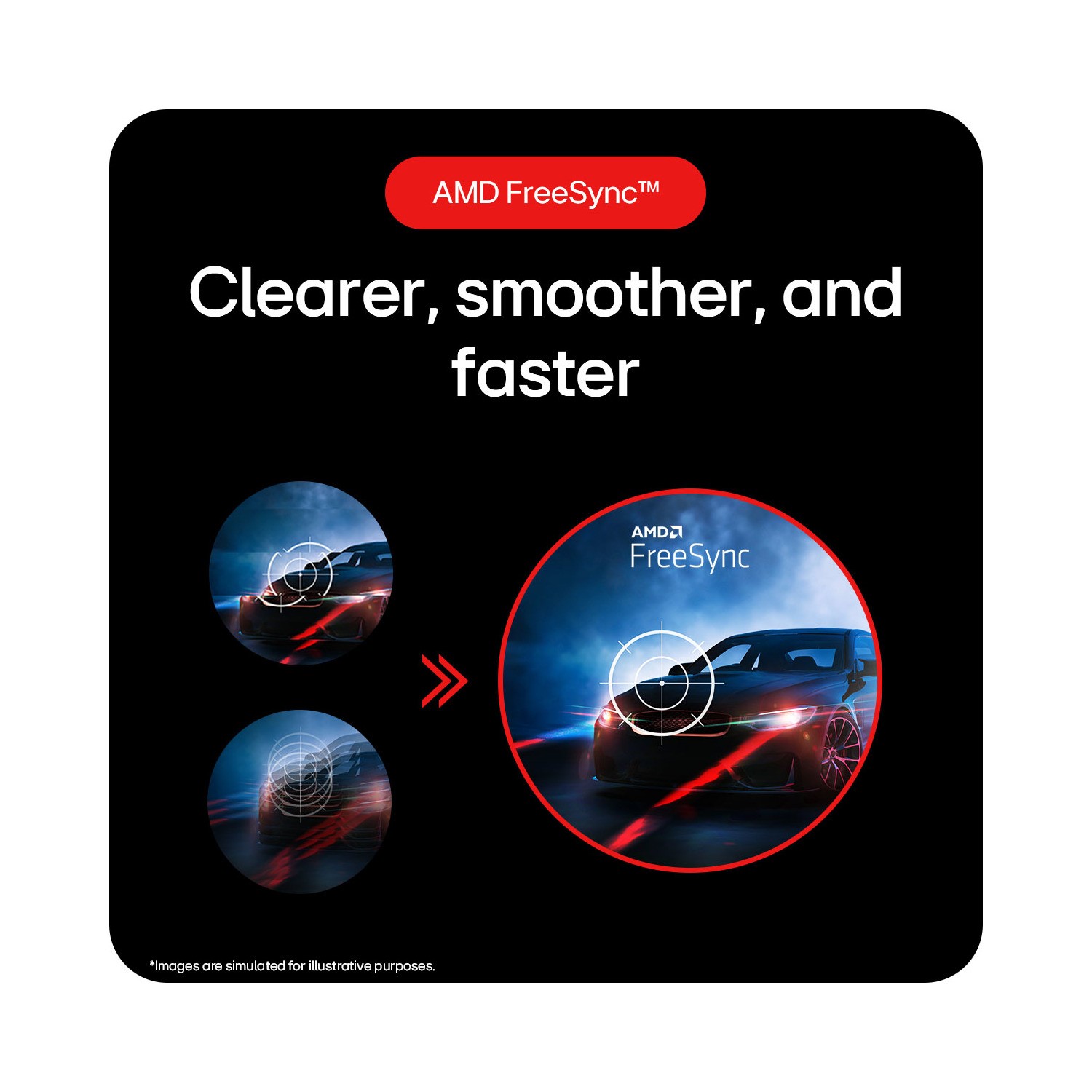 AMD FreeSync compatibility brings clearer, faster, smoother game play. Reduce screen tearing and minimize stutter and input lag to experience virtually seamless, fluid movement in high-resolution and fast-paced games.