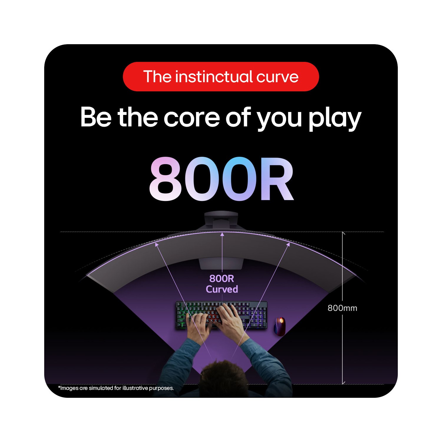This UltraGear OLED monitor's dramatic and steep 800R curve draws you in with game play by extending the periphery to feel like you're surround by the action.