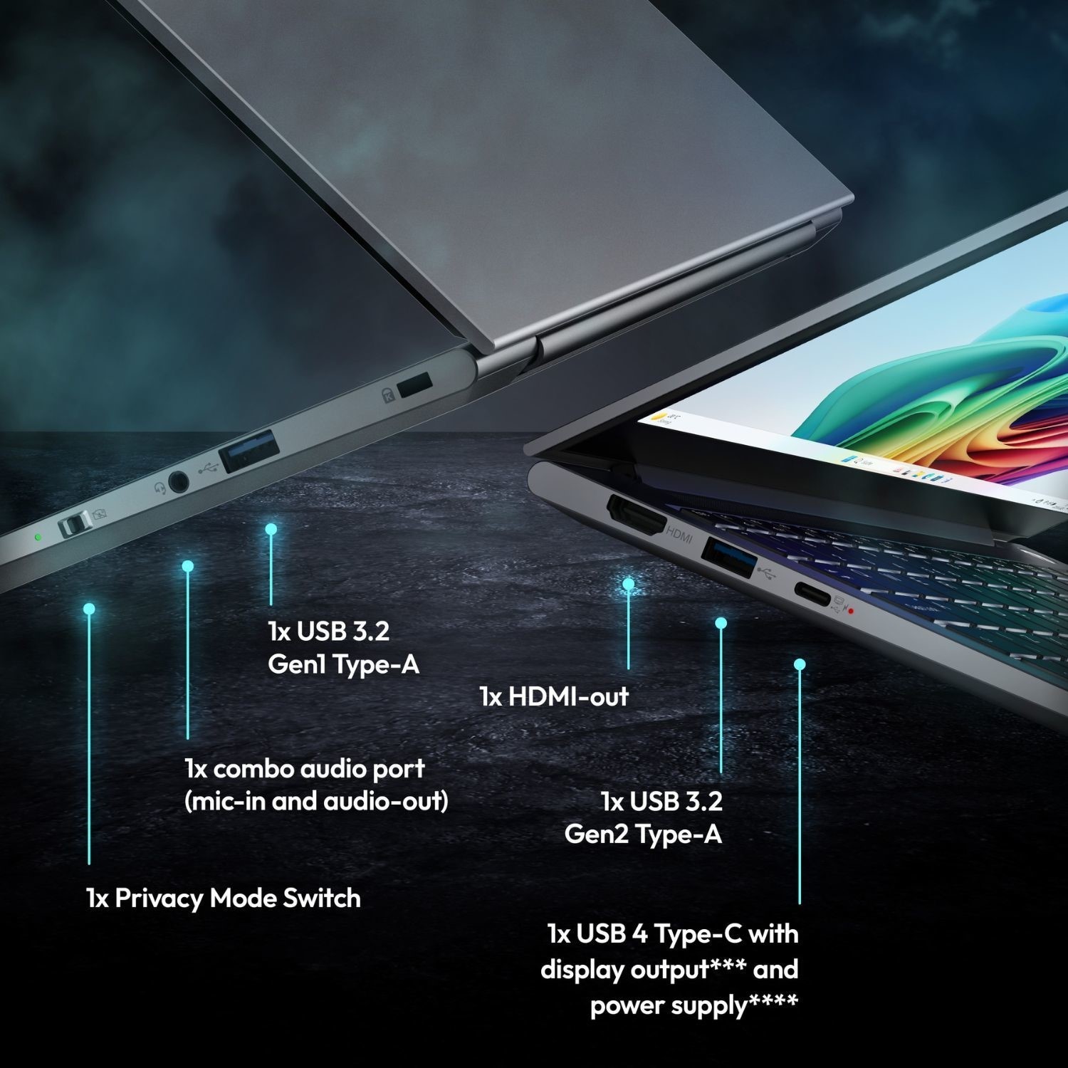 Connectivity is future-proofed with Wi-Fi 7, Bluetooth 5.4, and USB 4 Type-C for transfer speeds up to 40 Gbit/s. HDMI, audio, and memory card support add further flexibility. Thoughtful details set this laptop apart. The backlit keyboard ensures comfort in any lighting, while the Windows Hello fingerprint sensor allows quick and secure access. The Privacy Switch physically disables the camera and microphone for total peace of mind. A 4-speaker design with Advanced Audio Performance delivers rich, immersive sound, while AI-powered noise cancellation and Windows Studio Effects make video calls look and sound professional. The The Medion SPRCHRGD 14 S1 blends beauty, performance, and intelligence in one refined device. It is as much about presence as it is about power, giving you the confidence to work, create, and live on your own terms. SPRCHRGD 14 S1. Beautiful design. Intelligent performance. True freedom.