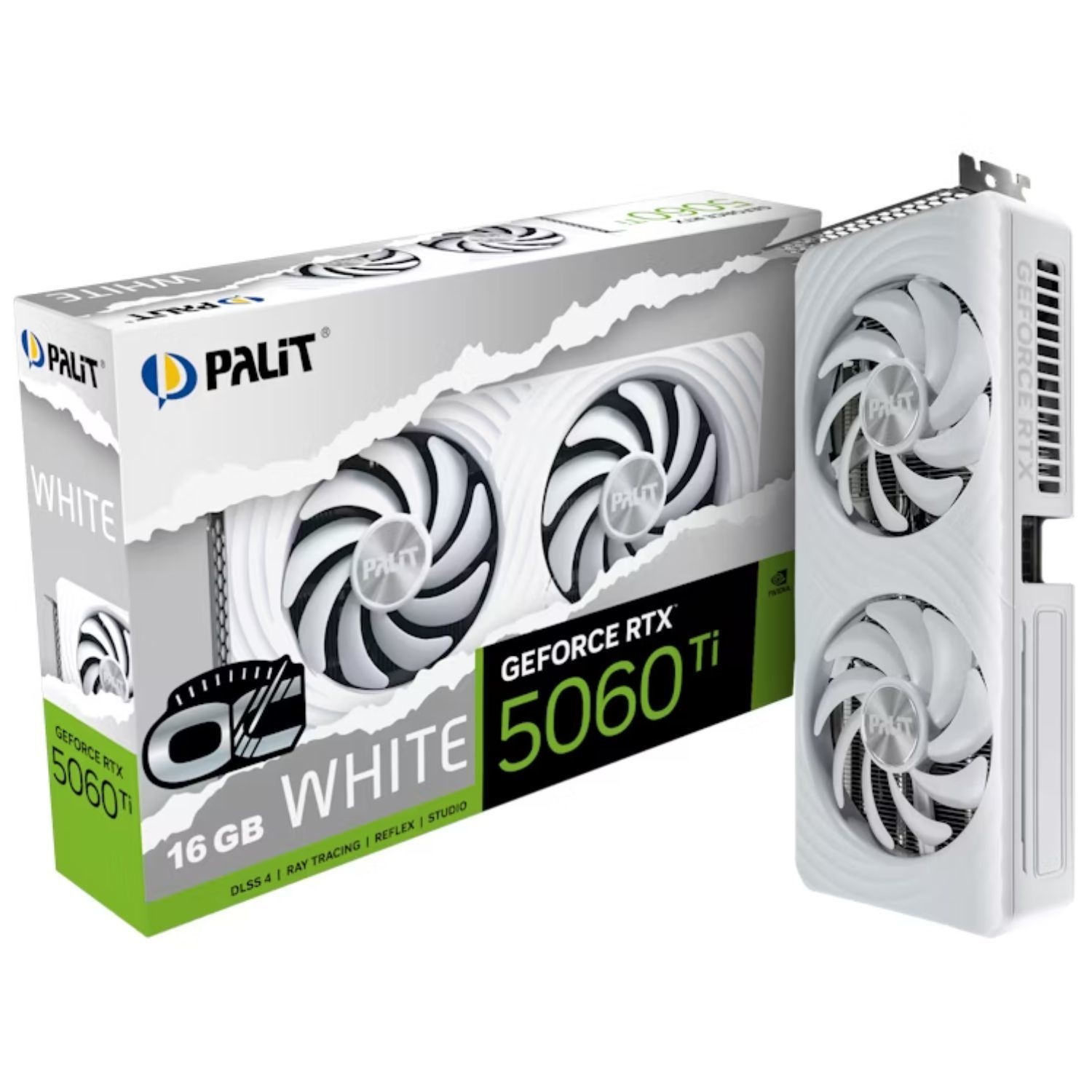 The Palit GeForce RTX™ 5060 Ti White offers classic cooling efficiency in a clean, modern white design. Twin 95mm fans ensure strong cooling performance with low noise, all within a compact 2-slot form factor that’s perfect for small builds. The durable white backplate enhances both structure and style.
