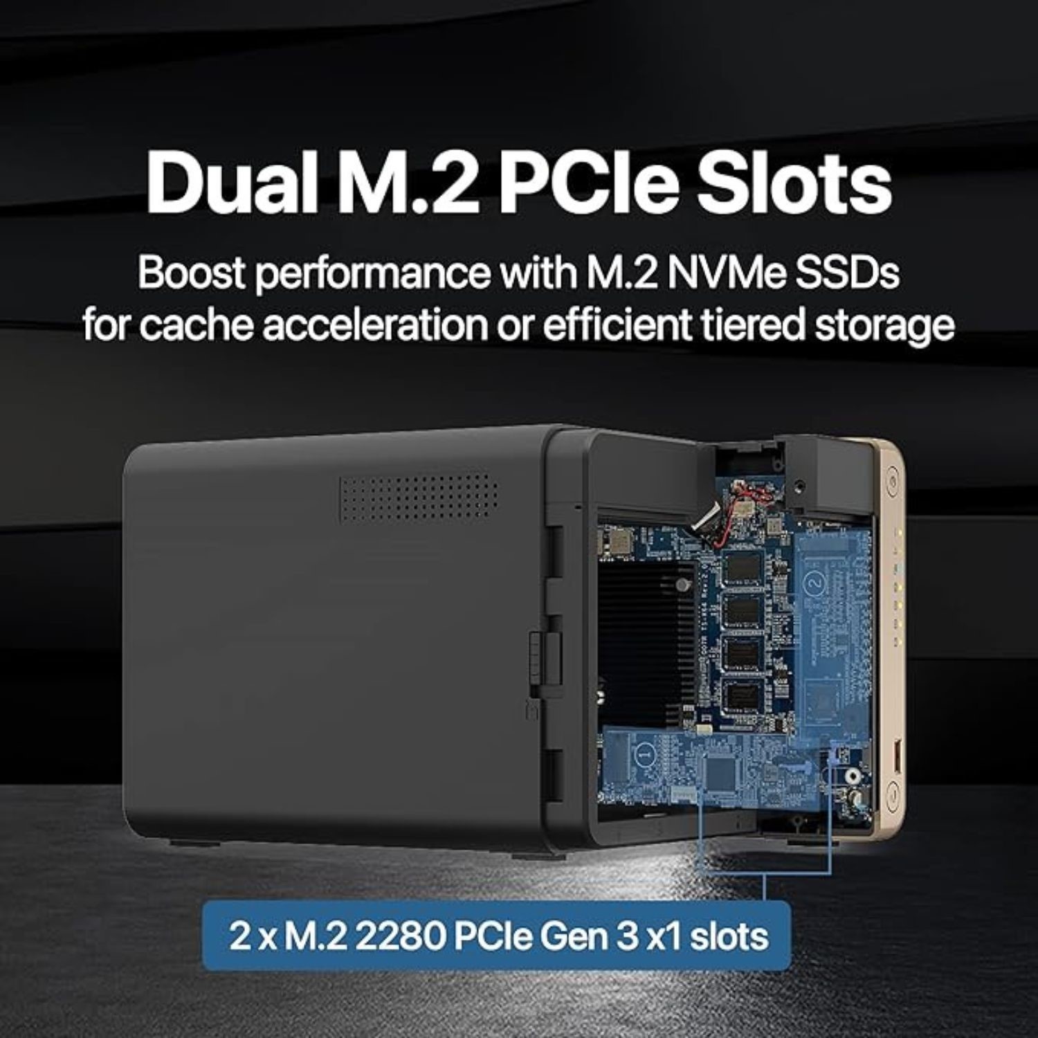 Install M.2 NVMe SSDs for cache acceleration or efficient tiered storage