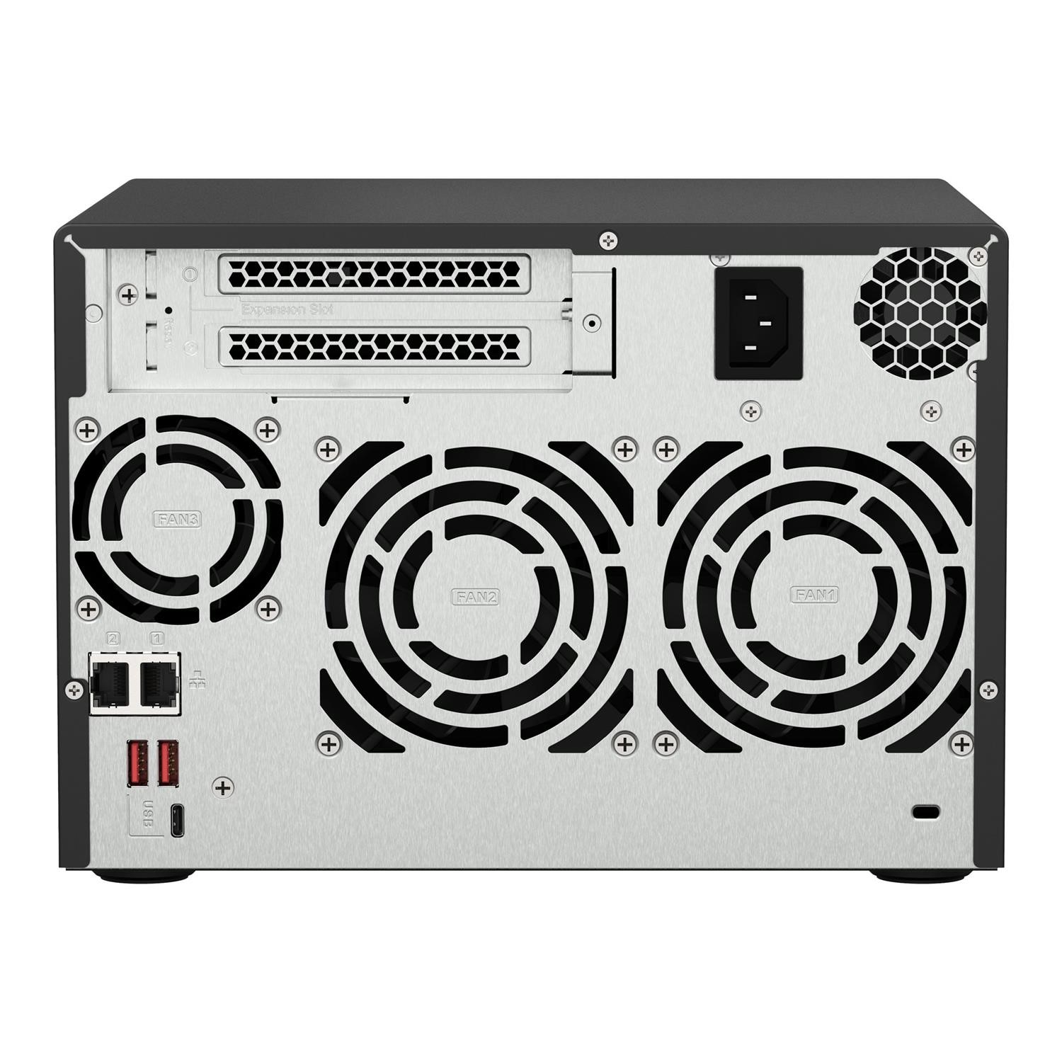 - Features QTS operating system and supports switching to ZFS-based QuTS hero for greater reliability
