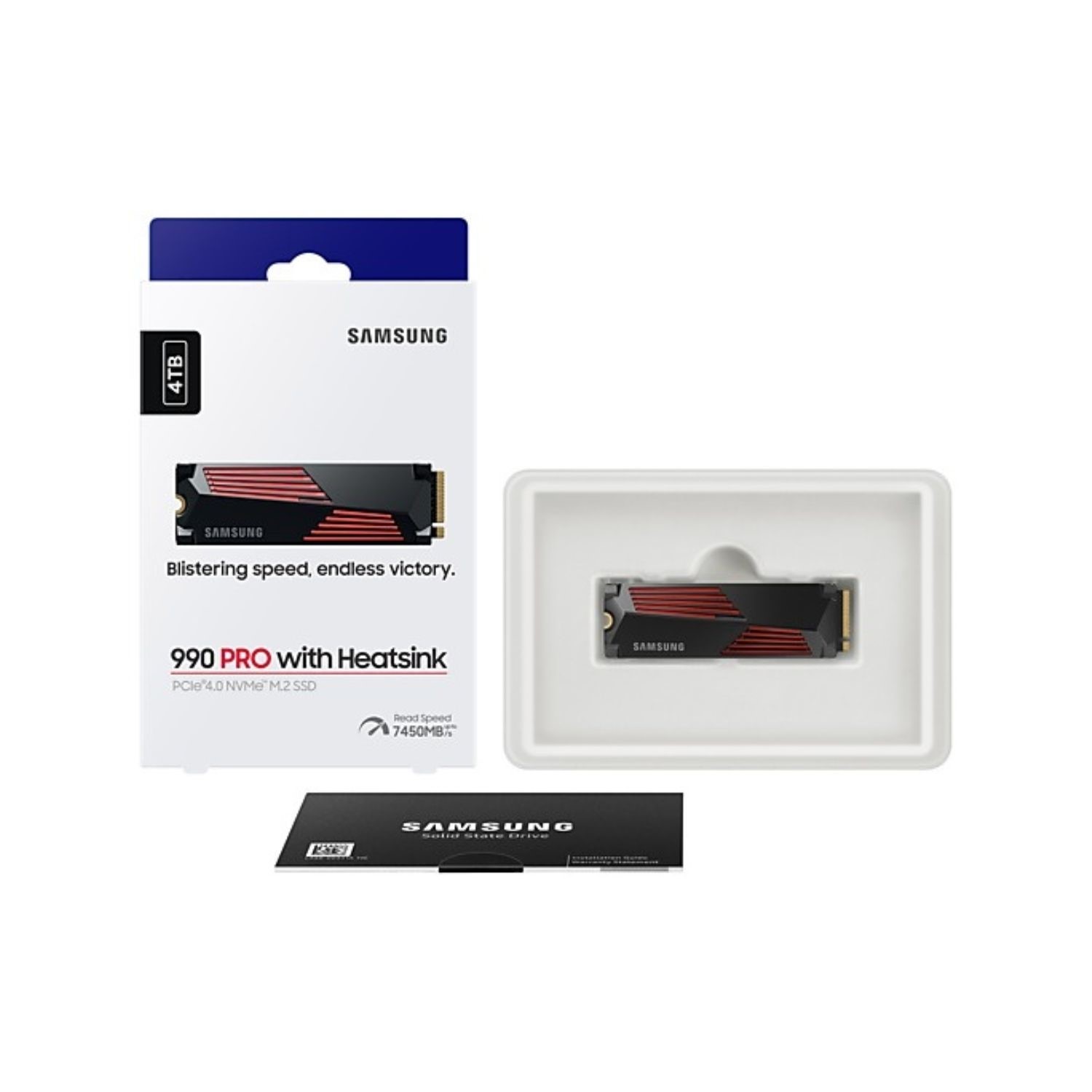Extraordinary speed increase. 990 PRO with heatsink offers sequential read/write speeds of up to 7450/6900 MB/s, approaching the maximum performance of PCIe® 4.0. Up to 40% and 55% faster random read/write than the 2TB 980 PRO—up to 1400K/1550K IOPS, while the 4TB model reaches up to 1600K IOPS.