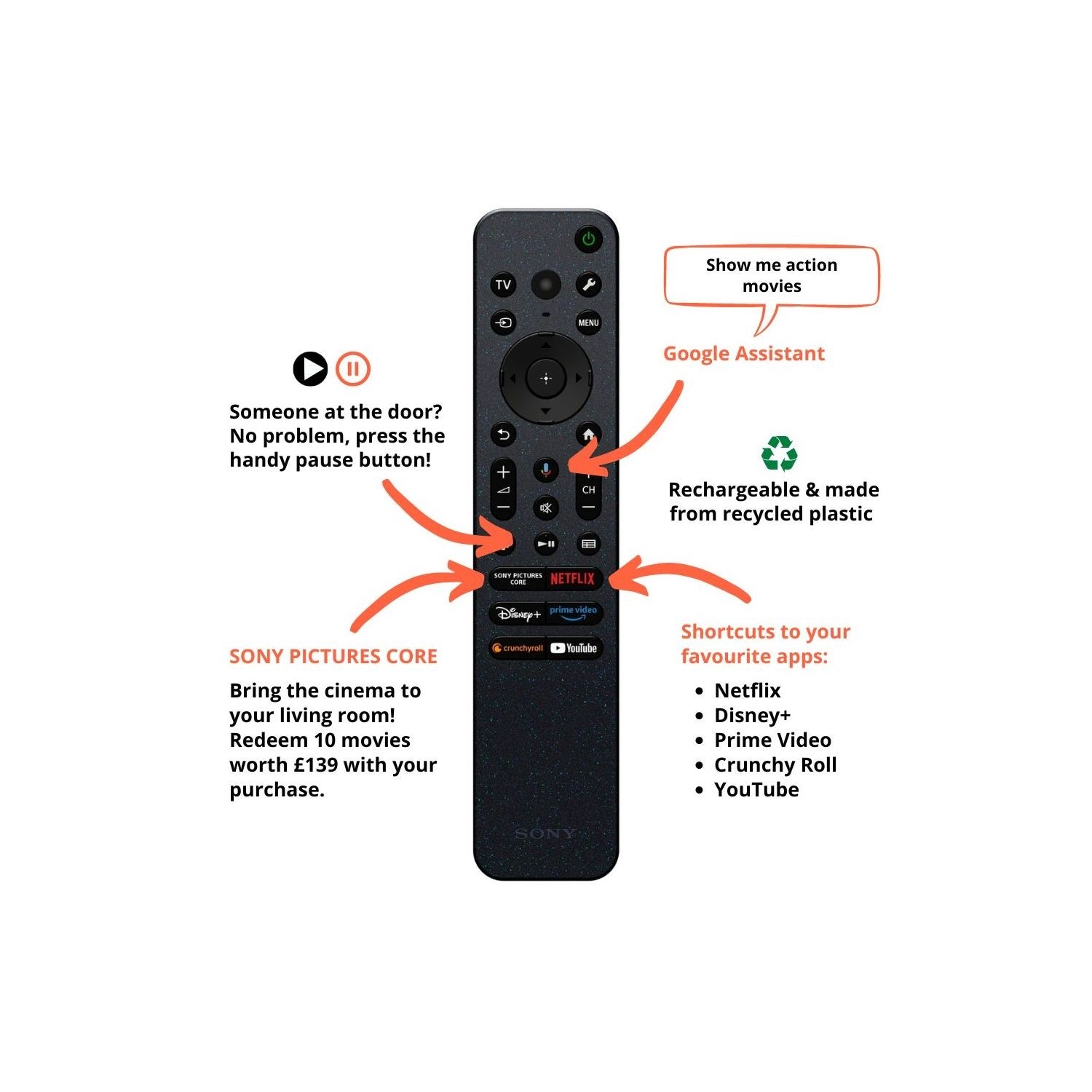 Eco-conscious materials and energy-saving features like efficient power usage, eco dashboard, SORPLASM, and a rechargeable backlit remote help reduce power consumption without compromising performance or style.