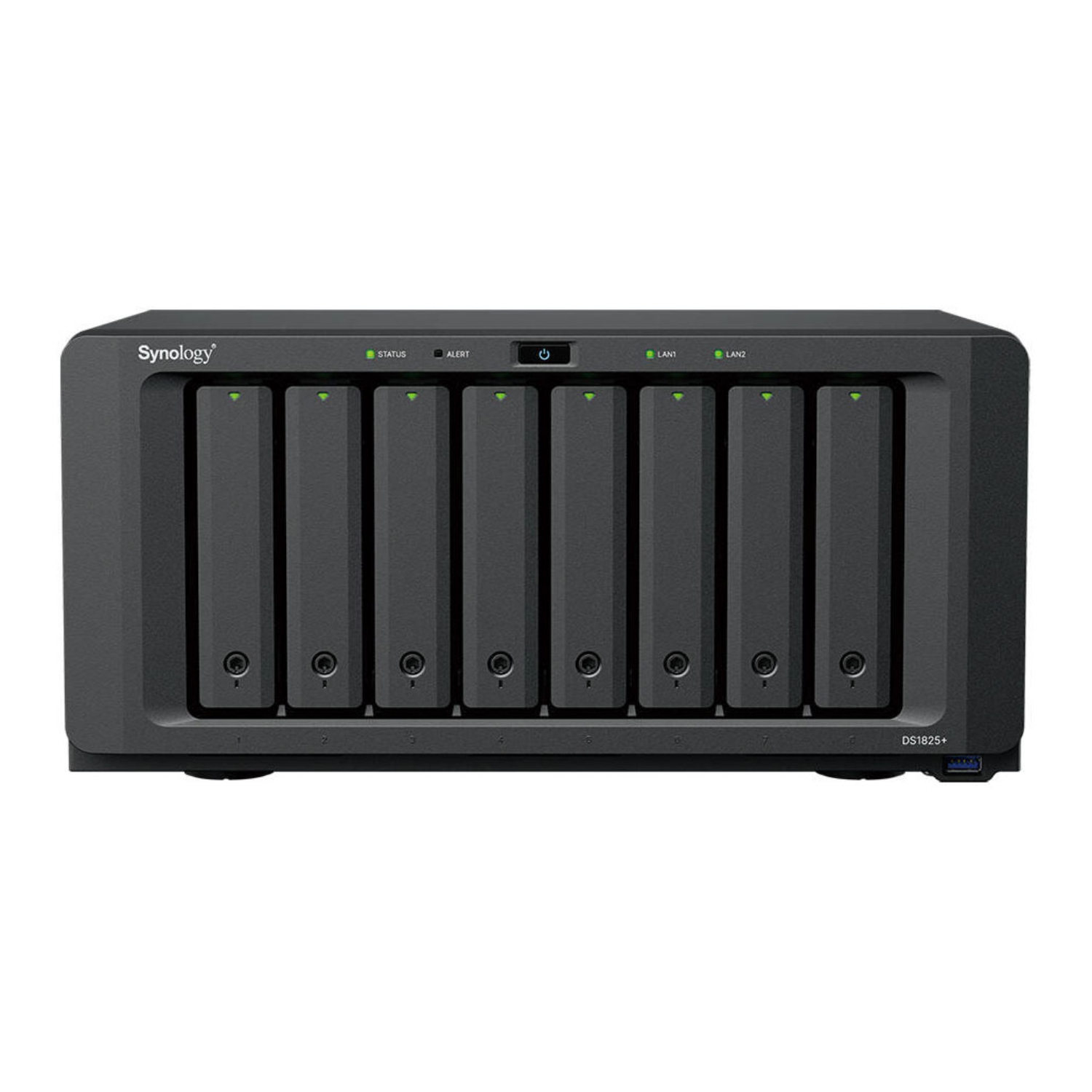 With eight drive bays supporting 3.5" SATA HDDs, 2.5" SATA SSDs, and two M.2 2280 NVMe SSD slots for cache acceleration or dedicated SSD pools, the DS1825+ offers up to 160 TB of raw capacity. When paired with two DX525 expansion units, total capacity scales up to 360 TB across 18 bays, making it ideal for growing businesses and creative professionals.
