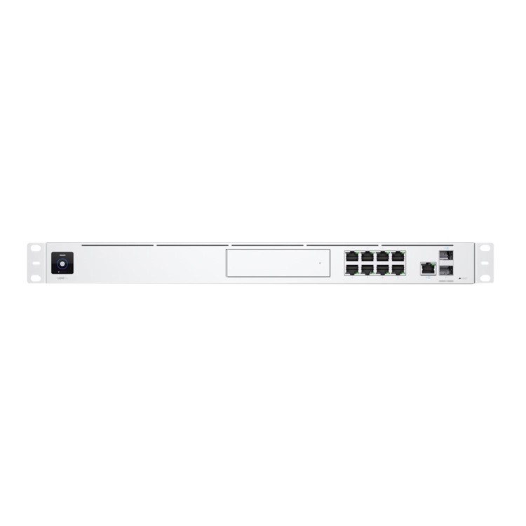 The Ubiquiti UDM-Pro UniFi Dream Machine Pro Enterprise Network Appliance is an all-in-one network appliance for a scalable network in an office, retail, or hospitality environment. Powered by a fast 1.7 GHz quad-core processor, the UDM Pro combines multiple functions into a single device. It integrates software – the UniFi Network Controller and UniFi Protect video surveillance – with all-in-one hardware featuring a high-performance security gateway with a built-in switch and hard drive bay.