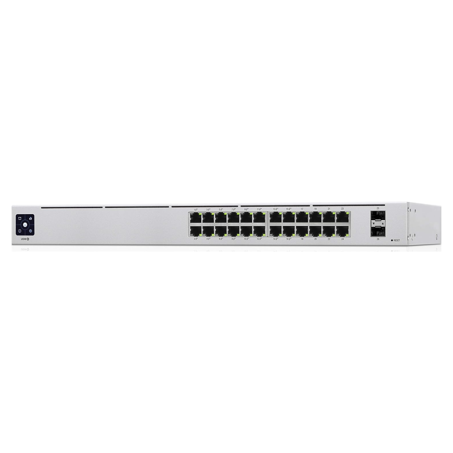 The Ubiquiti USW-24-POE Gen2 24-Port Managed Gigabit PoE+ Switch is a configurable Gigabit Layer 2 switch with twenty-four (24) Gigabit Ethernet ports including sixteen (16) auto-sensing 802.3at PoE+ ports, and two (2) SFP ports. It provides Gigabit PoE links to your RJ45 Ethernet devices and Gigabit fibre uplink options to your enterprise network. The USW-24-POE features a 1.3-inch touch LCM to provide status information. With a depth of 7.9-inches, the compact fanless design can be easily installed in a SOHO rack cabinet.