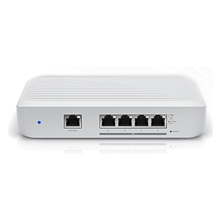 The Switch Flex XG (USW Flex XG) is a fully managed, multi-gigabit, Layer 2 switch with (4) 10GbE RJ45 ports and (1) GbE PoE input. The USW Flex XG sports slim, compact housing and can be mounted on a desktop. This switch can also be monitored or configured from anywhere with the powerful, intuitive UniFi Network web application and mobile app.