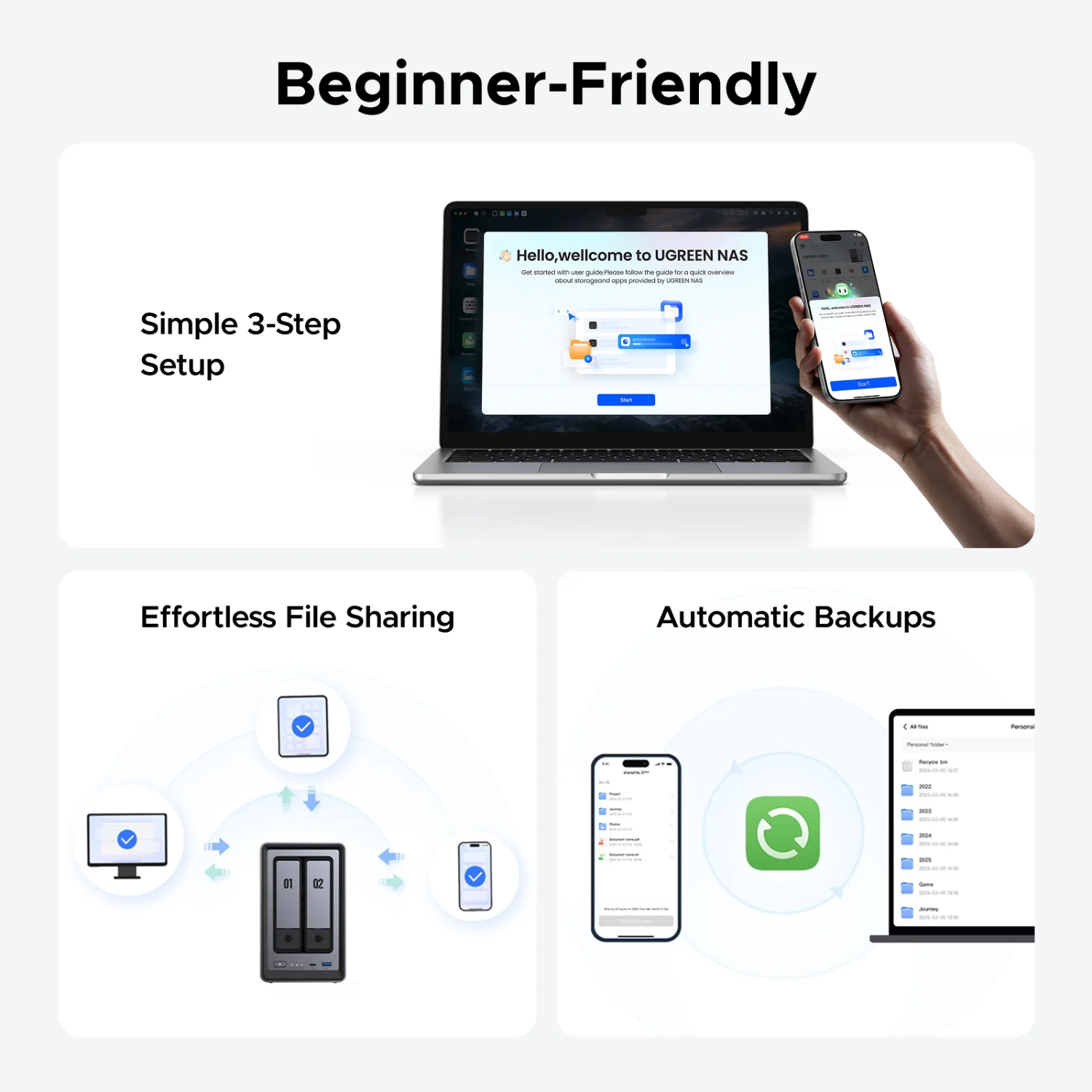 Simple setup and easy file-sharing on Windows, macOS, Android, iOS, web browsers, and smart TVs, giving you secure access from any device.