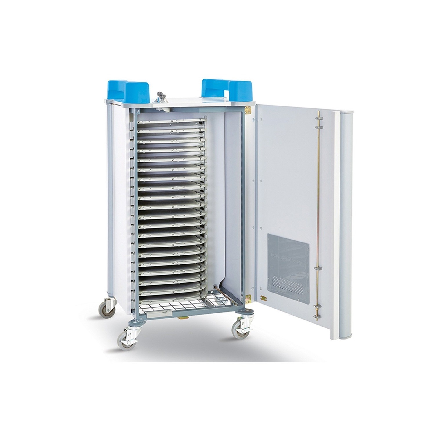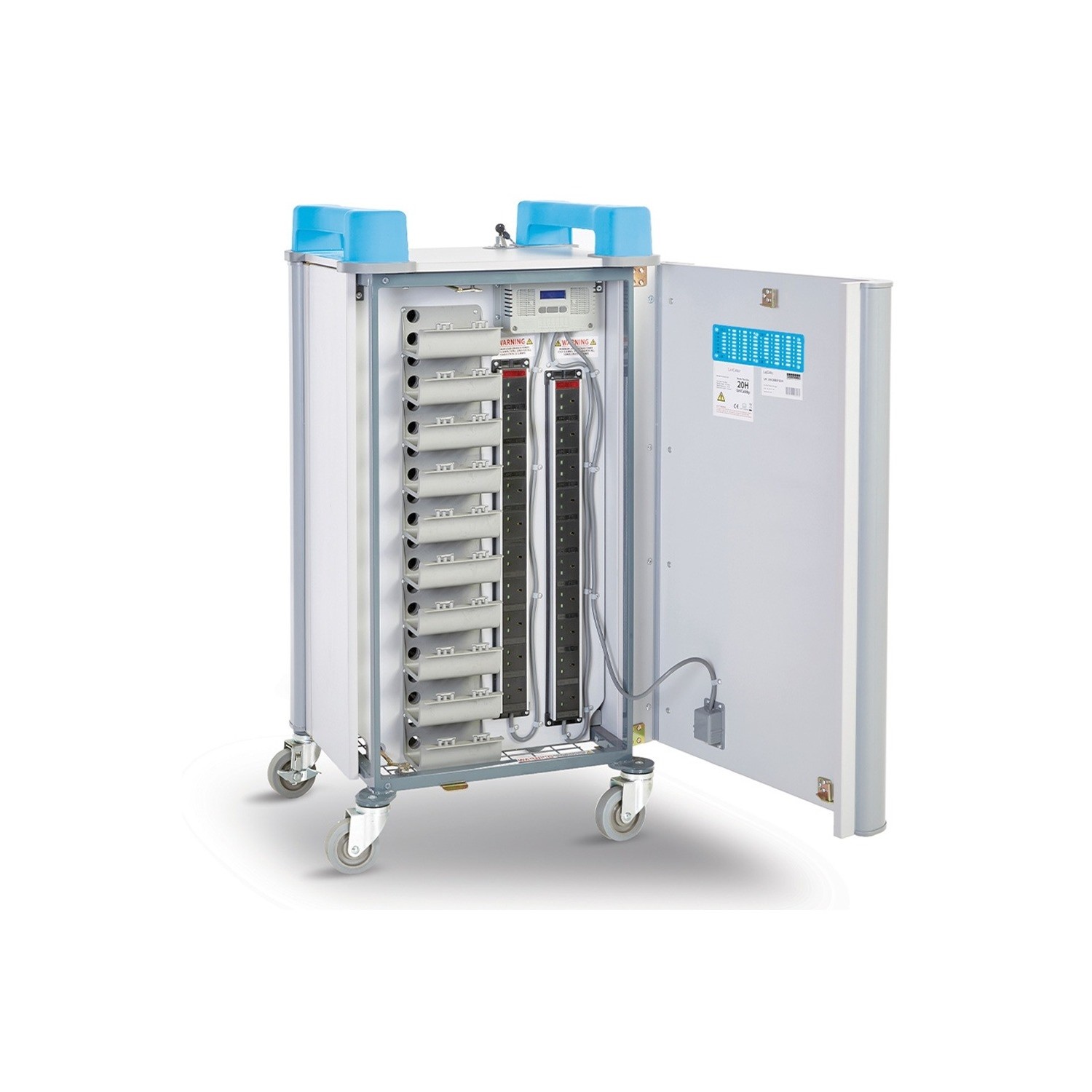 Charges 20 Devices up to 14″ screen size – Chromebooks, laptops and tablets including protective cases