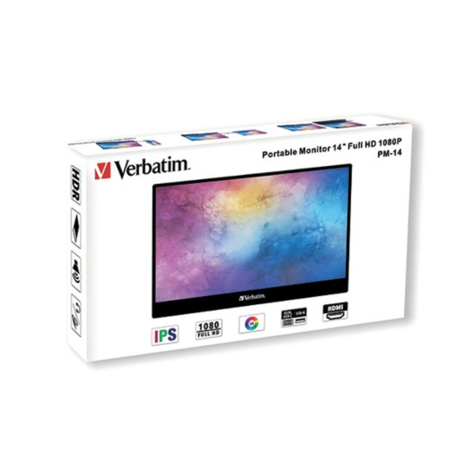 Delivering 16.7M colours in 1080p or full HD, the Verbatim Portable Monitor utilizes in-plane switching technology (IPS) to produce a sharper and more accurate picture and wide viewing angle on its 16:9 screen. The built in kickstand enables the monitor to be set up at the angle that suits you best in a position of your choice helping to improve comfort and overall productivity. The display incorporates high-dynamic range (HDR) technology which improves picture quality - significantly expanding the range of both contrast and colour – giving the image more 'depth' and creating a fantastic viewing experience.